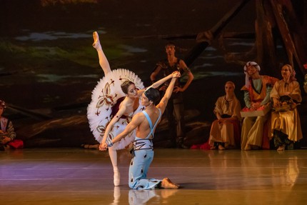 В зрительской программке в качестве композитора указан один лишь Адольф-Шарль Адан, но в партитуру балета, связывая XIX век, в котором этот балет родился, с XX веком, память о котором всё еще жива и в нашем XXI веке, в этой постановке добавлена музыка Рейнгольда Глиэра и Фикрета Амирова. В программке вы не найдете также имени Петипа, хотя наследие этого мэтра танца, а также блестяще стилизованная под его эстетику новая хореография Юрия Клевцова, красной нитью проходят через весь спектакль.