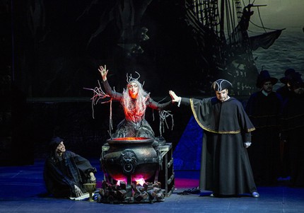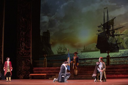 Нарочно не придумаешь, но «Бал-маскарад» Верди, действие которого разворачивается в американском Бостоне в конце XVII века, то есть в колониальную эпоху, своим фоновым антуражем тоже связан с морской стихией! Бостон возник из-за мытарств композитора с цензурой, ибо исконный сюжет, ранее положенный на музыку Обером (1833), был связан со смертельным покушением в Стокгольме на шведского короля Густава III во время бала-маскарада в Опере 16 марта 1792 года. Чтобы вытравить воспоминание об инциденте и не «выпустить» монарха на сцену театра, коллизию сюжета со смертельным исходом решено было запрятать подальше, то есть в Америку, и «поглубже», то есть на столетие назад.