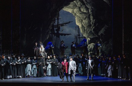 В этой постановке нет многого, что могло бы быть, выпадает ряд сольных персонажей, однако динамичная зрелищность в формате нон-стоп с прологом, двумя актами, в каждом из которых по две картины, а также с оптимистичным эпилогом искупает всё! Сюжетная коллизия практически та же, что и всегда, однако на этот раз она высвечена на редкость рельефно! После картины-зачина на невольничьем рынке в турецком Адрианополе, после картины в гроте корсаров и картины во дворце Сеид-паши со знаменитым «Оживленным садом» корабль сюжета вдруг выносит на пиратский остров. Тот самый, где запрятаны награбленные сокровища, тот самый, откуда была похищена турками Мария…