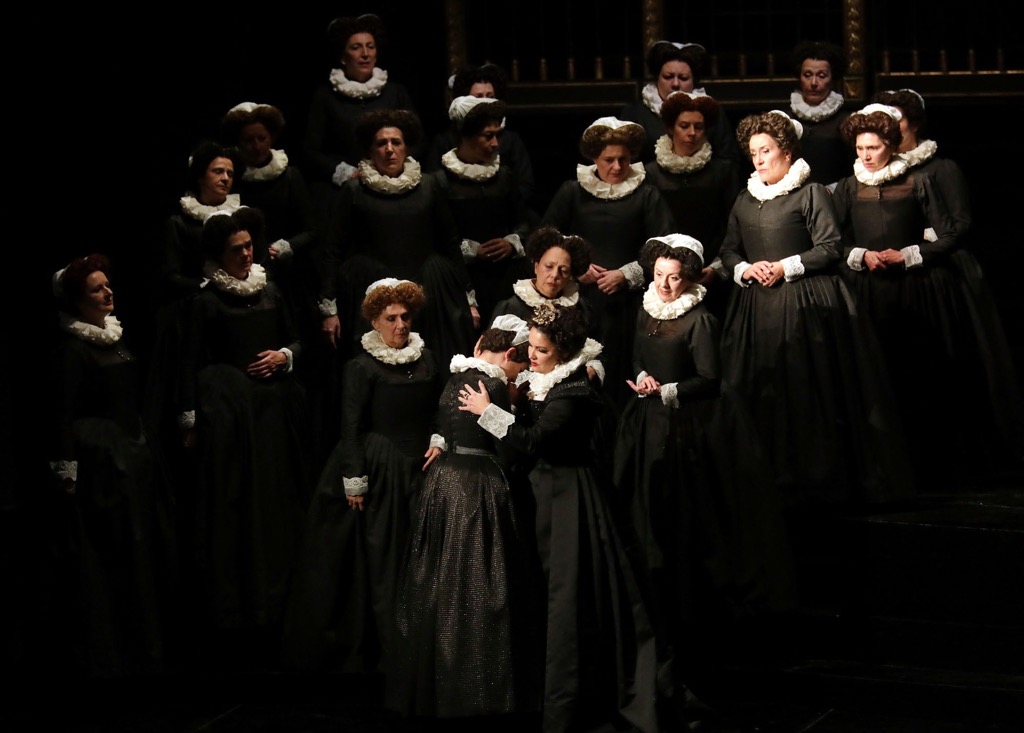 Если номера и ансамбли первой части оперы, огромный дуэт с Доном Карлосом, прощание с маркизой и сцена с Принцессой Эболи были сделаны А. Нетребко едва ли не эталонно, с феноменальной точностью интонирования, элегантной фразировкой, продуманными акцентами и роскошными ферматами на пиано, то в финальной части спектакля и, самое главное, в огромной арии Елизаветы певица хоть и сохраняла корректность интонирования, но то и дело утрачивала контроль за фокусировкой звука.