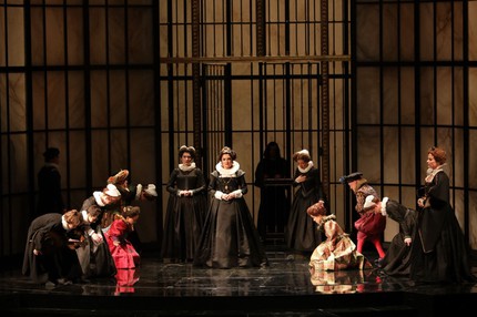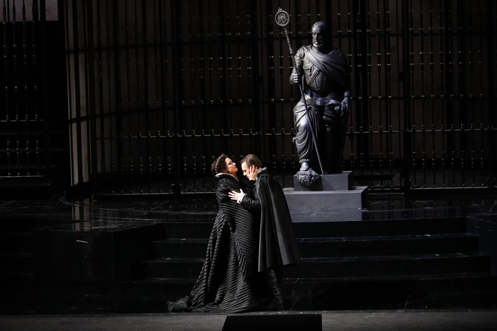 Напряжённо мрачный колорит этой оперы включает в себя монументальные ансамбли, душераздирающие дуэты, симфонические и мелодические красоты [1]. Сцены «Дон Карлоса» настолько внутренне статичны, что часто исполняются без ярко выраженной режиссуры (пара плясок под Песню про вуаль, пыточная сцена Аутодафе и непонятно-невнятный финал – вот и всё поле для постановочных фантазий). Именно поэтому опера идеально вписалась в беспроигрышную стратегию интенданта «Ла Скала» Доминика Майера, который каждый год выбирает на открытие сезона строгую постановку и именитый состав певцов.