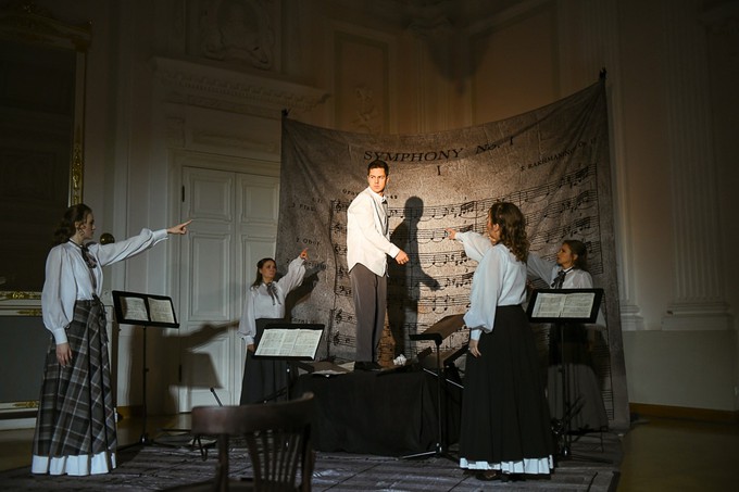 Перечислить весь ансамбль – задача неблагодарная. Но сила этого проекта – именно в его ансамблевости, в безупречной разыгранности как по нотам, в гармонии всех его сюжетных пластов, визуального ряда и драматургии. Постановочно-артистический альянс единомышленников сложился невероятно большой – огромный! И альянс, представивший феномен Рахманинова через мгновения истории в окружении его семьи, друзей и коллег по искусству состоялся! Исторический музыкальный фон эпохи композитора проступает в спектакле в живом звучании его фортепианных опусов, романсов и оперных арий в сопровождении фортепиано, и действо на трех сюжетных тропах, разыгрываемое в девяти пространствах Петровского путевого дворца, вбирает в себя в общей сложности одиннадцать оригинальных сцен. А какую из троп выберете вы, зависит только от вас…