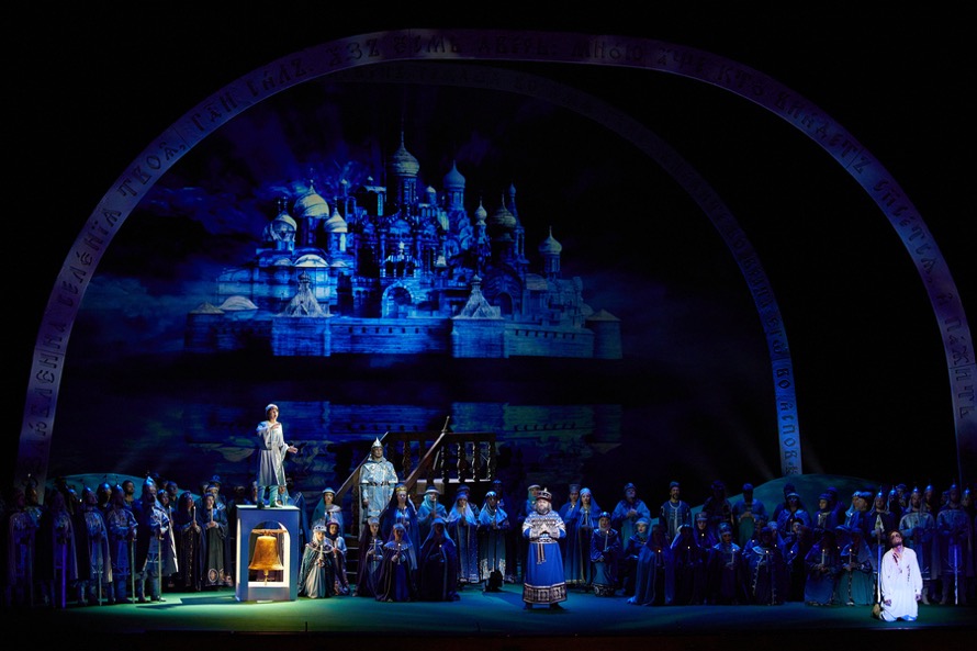 Именно так и было анонсировано в афише фестиваля, посвященного 180-летию со дня рождения Николая Римского-Корсакова (1844–1908), который был задуман на двух сценах Большого театра России и включил показы как собственных спектаклей, так и постановок Мариинского театра. Так, собственно, и вышло: с 23 по 25 февраля на Исторической сцене Большого Мариинский театр разрядился мощной обоймой своего оперного репертуара. Его гастроли открылись 23 февраля «Псковитянкой», причем – и это вызвало дополнительный интерес – с прологом «Боярыня Вера Шелога», 24 февраля продолжились «Ночью перед Рождеством», а 25 февраля завершились «Сказанием о невидимом граде Китеже и деве Февронии». Улов знатный, ибо в репертуаре Большого эти названия сегодня не значатся.