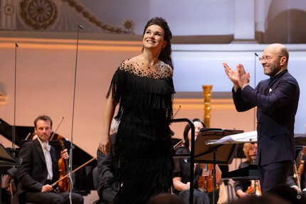 Но «головокружение от успехов» – это не о нашей героине, ведь Ольга Перетятько – тот тип творческой личности, о которой смело можно сказать self-made woman. Сегодня, когда певицей покорены сцены ведущих оперных театров и крупнейших концертных залов мира, ее связь с публикой в России не просто не прерывается, а развивается чрезвычайно активно и плодотворно. В свой родной дом – в Россию – певица возвращается с регулярной периодичностью. Однако если в прошлые московские приезды вниманию своей публики она предлагала оригинальные по тематике камерные программы (вспомним ее рециталы в Большом зале консерватории и в Концертном зале «Зарядье»), то на этот раз на сцене Концертного зала им. П.И. Чайковского представила девять оперных арий в сопровождении оркестра.
