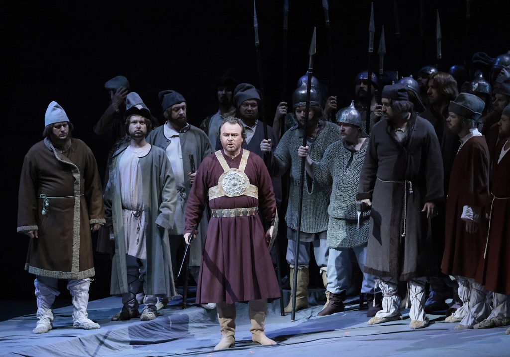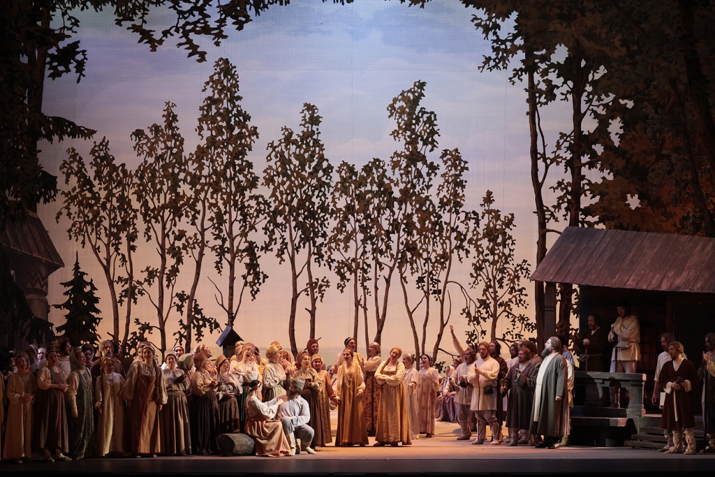 А ленинградская постановка 1939 года, если верить официальному буклету нынешних гастролей, вроде бы и не возобновлялась… В 1974 году ее сменил новый «Иван Сусанин» (дирижер – Виктор Федотов, режиссер – Роман Тихомиров, сценография и костюмы – по эскизам Фёдора Федоровского). И то была, несомненно, классическая – в духе советской традиции – постановка, но когда она исчезла из репертуара, автор этих строк сказать не в силах. Ясно одно: в год 200-летия со дня рождения Глинки на смену ей пришла, наконец, «Жизнь за царя», та самая постановка 2004 года, которая в репертуаре Мариинского театра сохраняется и по сию пору (дирижер – Валерий Гергиев, режиссер и сценограф – Дмитрий Черняков, костюмы – Дмитрий Черняков и Ольга Лукина). Вместе с тем с сезона 2021/2022 второй (танцевальный) акт и эпилог идут в ней в обновленной сценической редакции.