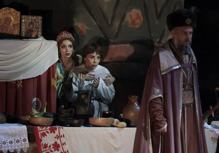 В партии Антониды мы услышали сопрано Анну Денисову, заставившую обратить на себя внимание музыкальностью и техничностью еще в выходной каватине и рондо первого акта. Свою лирическую партию певица провела с большой чувственностью и подкупающей естественностью, так что сопереживать ее героине на протяжении спектакля не составило ни малейшего труда. Не менее музыкально и технично, на мощной волне артистического куража, невероятно свежо и органично в партии-травести Вани показала себя Екатерина Сергеева. Певица позиционирует себя меццо-сопрано, однако в партии Вани, требующей рельефной яркости и контральтовой окраски, все иллюзии относительно звучания меццо-сопрано рассеиваются, как дым: партия предстает де-факто в версии для сопрано…