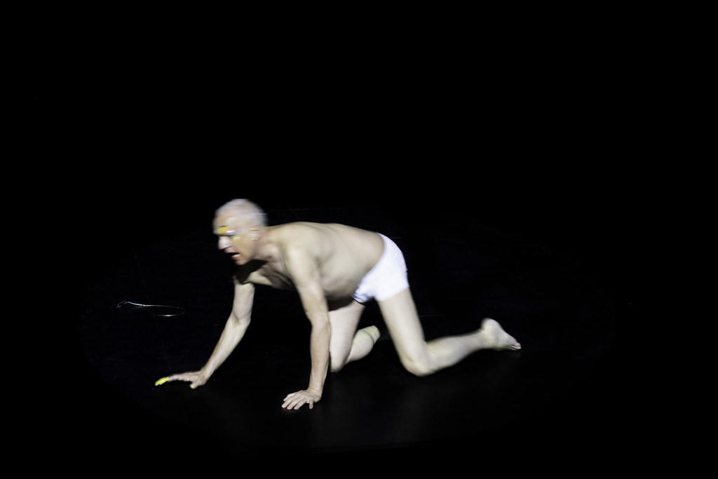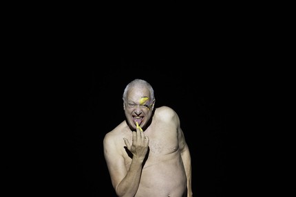 Есть несколько вариантов сценической работы с таким акустически пыточным материалом, в котором перекрёстная полиритмия оглушает, а атональная тональность, мягко говоря, выбешивает. Можно такое визуально эстетизировать, например, пригласив на главную партию исполнителя модельной внешности (такие решения производят головокружительный эффект!), а можно довести до абсурда и без того странную партитуру. Барри Коски выбирает второй подход, показывая, что король голый в буквальном смысле слова.