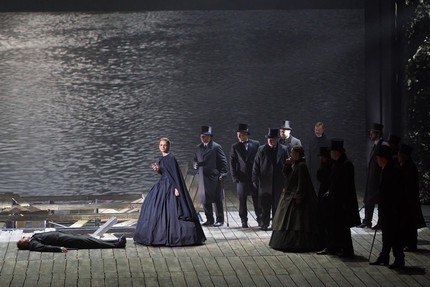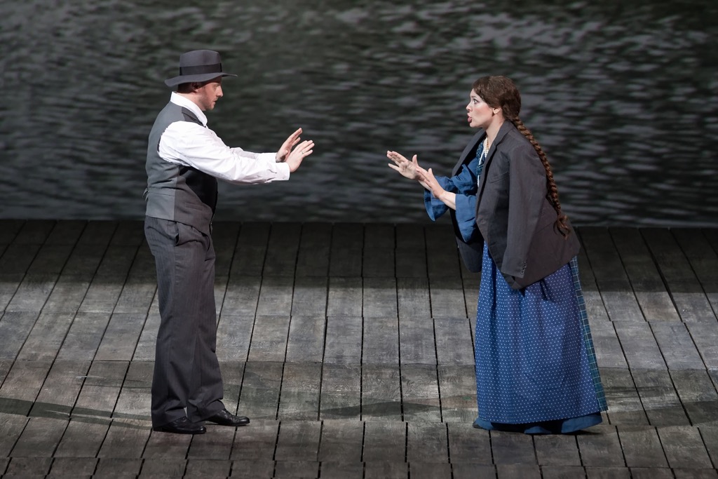 Премьера оперы Александра Даргомыжского состоялась в Музыкальном театре имени Станиславского и Немировича-Данченко 26 июня этого года. Музыкальным руководителем и дирижером выступил Тимур Зангиев, а режиссером – Александр Титель. Постановочную команду до полного театрального комплекта дополнили Владимир Арефьев (сценография, костюмы, видео), Дамир Исмагилов (постановка света), Андрей Альшаков (пластика и хореография), Николай Сергиенко (хореография) и, наконец, Станислав Лыков (главный хормейстер). Автору этих заметок данная премьера неожиданно дала возможность впервые взглянуть на русскую «Русалку» как на уникальнейший в своем роде, поистине заповедный образец русского драматического бельканто, и на то есть довольно веские причины.