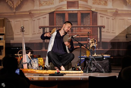 Из открытий фестиваля – Виктор Оськов, работающий в русле этнофьюжн и выступивший с экспериментальной авторской программой «Музыка четырех стихий». В ней исполнителем используются более 20 этнических инструментов разных народов и культур (ударные и духовые), а также технология лайв-лупинг, позволяющая записать каждый инструмент на глазах слушателей (оборудование лежит у ног музыканта и управляется, если руки заняты, пальцами ног), а затем накладывать записанные фрагменты друг на друга. Такое сочетание в одном лице мультиинструменталиста (человек-оркестр) и сэмплиста (человек-компьютер) само по себе поражает. Чудеса тихих звуковых метаморфоз погружали слушателя в личные ассоциации, отзывались буддийским мировоззрением «приятия», созерцания, мягкой медитации.