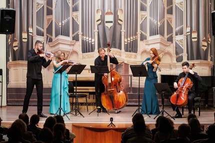Вкус к аранжировкам был очевиден с первого номера, Пассакальи Генделя, где вариации предстали в неожиданном и разнообразном фактурном облике. Одним из «манков» программы стала сюита из мюзикла «Скрипач на крыше» Дж. Бока, еврейский колорит которой был очень к лицу этому тембровому составу. Через цепочку контрастных эпизодов – то песенных, то танцевальных, с узнаваемыми мелодиями и эффектными приемами игры – музыканты передали удивительное мироощущение героев мюзикла, готовых пуститься в пляс, едва выразив страдальческую жалобу. Задержать дыхание заставил виолончелист Степан Худяков (кстати, он начинал свой музыкальный путь в Екатеринбурге), интонировавший мелодию «Бахианы № 5» Э. Вила-Лобоса как певческое sotto voce, интровертно, на грани слышимости. Искусство кантилены и подголосочности показала тихая, чуткая интерпретация всем ансамблем обработки русской народной песни «Лучинушка». Овации сопровождали и интригующую мелодию из фильма «Розовая пантера», и динамичные ориентальные «Две таджикские песни», и заводной финальный «Коктейль-буги», сочиненный Кириллом Носенко.