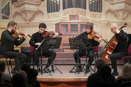 Программу, целиком посвященную Альфреду Шнитке (2024 – год 90-летия со дня рождения композитора), сыграл ансамбль, образованный из Квартета имени Танеева, Михаила Дзюдзе и екатеринбургского пианиста Константина Тюлькина. Два выбранных произведения показали два лица Шнитке: Сюита в старинном стиле (1972) – его стилизаторский талант и светлое, гармоничное мироощущение; «Гоголь-сюита» – его задиристо-хулиганское амплуа и умение работать с «банальным» материалом.