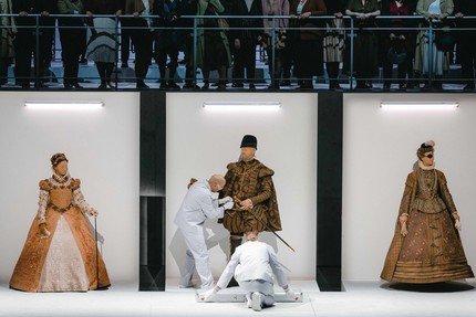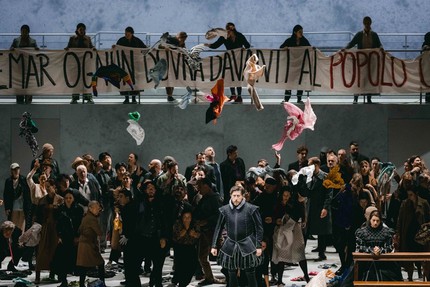 Интересно, что и во второй части вечера разгоряченная публика не успокоилась и устроила после сцены народного восстания (2 картина III акта) настоящую обструкцию: зрители кричали, свистели, громко комментировали происходящее. Обстановка в зале была настолько неуправляемой, что исполнительнице партии Елизаветы Асмик Григорян пришлось с упрёком к разбушевавшейся аудитории покачать головой, а музыкальный руководитель спектакля маэстро Филипп Йордан вынужден был накинуть на дирижёрскую палочку белый платок и поднять его в знак примирения [1]. Только после этого спектакль смогли продолжить. Признаться, я не припомню столь бурного выплеска эмоций в Венской опере.