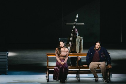 Оркестр Венской оперы под управлением Филиппа Йордана представил эталонный, если не сказать, идеализированный образ вердиевской партитуры без единого отклонения от темпов, без единого смещения акцентов, настоящий пастеризованный консерватизм, к которому и не придерёшься. И эта интерпретация также гармонично вписывалась в философскую программу спектакля.