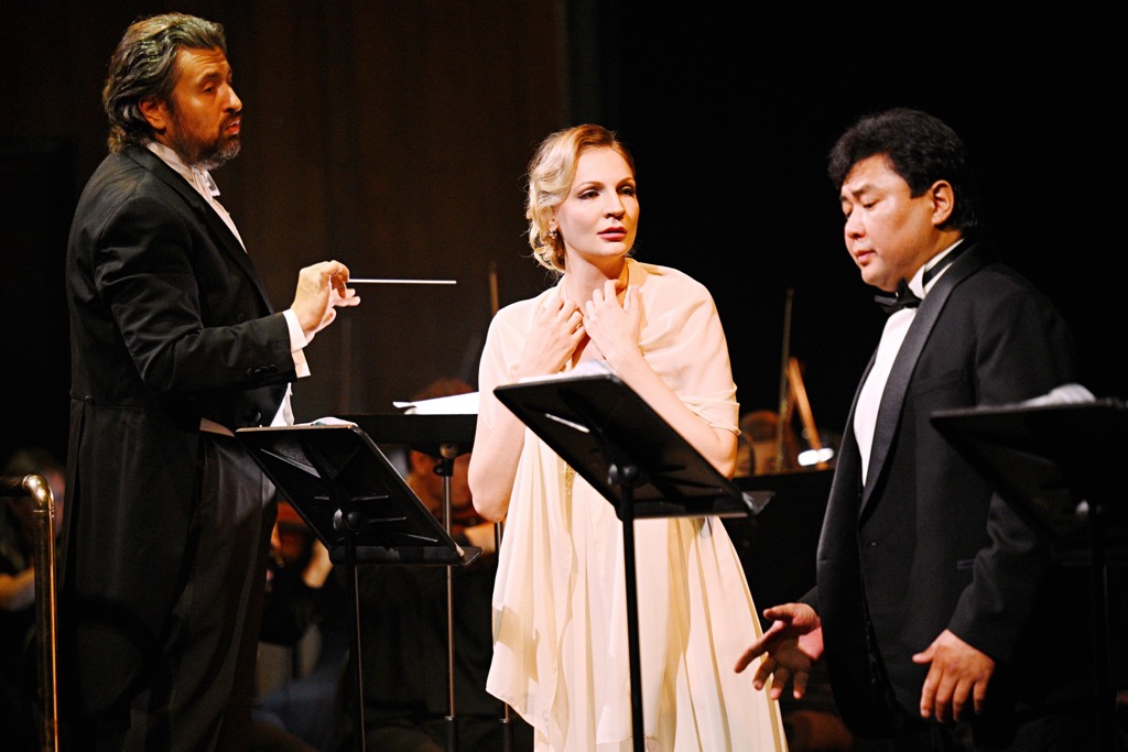 Арию Индийского гостя из «Садко» на вполне зачетной проникновенной кантилене спел лирический тенор Кирилл Панкевич, однако главным открытием вечера стал лирико-драматический тенор Давит Есаян, хотя в «народный» си-бекар в исполненной им вслед за ариозо арией Калафа «Nessun dorma» въехать по широкой колее ему пока не удалось. Но это, когда предъявлен весьма оптимистичный вокальный материал, когда предъявлен не менее оптимистичный артистический задел, дело, как говорится, наживное. Обладая для Калафа прекрасной вокальной фактурой, исполнитель – и в это безотчетно веришь – имеет все шансы сполна проявить себя в такой непростой, «отнюдь не прогулочной», партии!