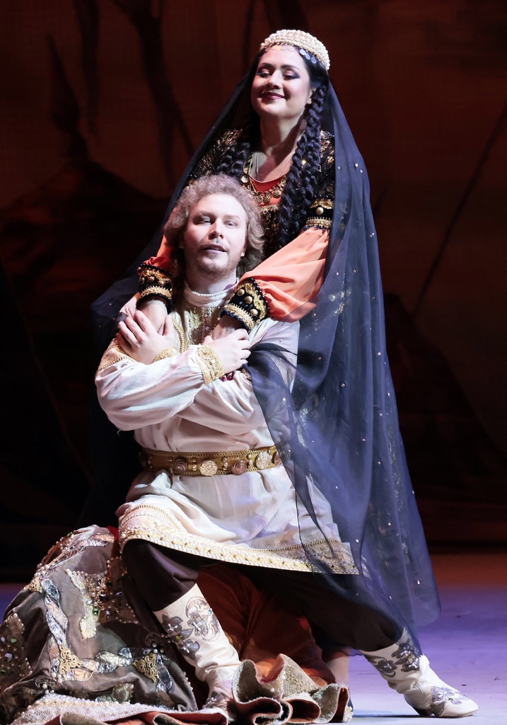 За ее музыкально-артистические тылы на этот раз можно было не беспокоиться, ведь в ней предстал другой бас – многоопытный солист Большого театра Михаил Казаков, певец известный и титулованный. Свой путь в этой опере на главной оперной сцене России он начинал еще в постановке 1993 года с партии Кончака, успев сделать это незадолго до исчезновения спектакля из репертуара, а в постановке 2013 года не менее успешно спел князя Игоря, доказав, что и эта партия – важнейшая и неотъемлемая часть его вокально-артистического амплуа. С возвратом к Кончаку мастерство певца мы по-прежнему смогли оценить в полной мере: к арии-хиту в первой половецкой картине – к визитной карточке образа – с новыми эпизодами второго половецкого стана добавилась и «героическая» песня Кончака, и с ней образ этого персонажа певец сумел обогатить новыми яркими красками…