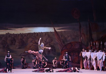 Декорации и костюмы для этой премьеры весьма оперативно предоставил Мариинский театр, и выпуск спектакля состоялся, можно сказать, «ударными темпами». О прекрасной дирижерской работе Антона Гришанина уже было сказано, но при этом как прекрасно – вдохновенно и мощно, – будучи подхваченными хором Большого театра, зазвучали и масштабные – в том числе и вновь обретенные – хоровые страницы (главный хормейстер – Валерий Борисов)! Хор Большого театра был на высоте и в сцене «Половецких плясок», но той первозданной визуальной мощи и всецело захватывающей круговерти танцевального шабаша, к которому Москву приучила динамичная хореография Касьяна Голейзовского, в довольно пресной и спокойной хореографии Михаила Фокина не было и в помине…
