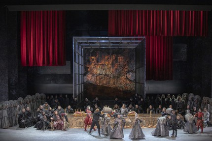 Эта коробка создают необходимые створы сюжетного развития за счет чрезвычайно действенной, символически искусной видеографики. Внутри и за ее пределами, в том числе и на авансцене, персонажи вовлечены в парадоксально камерное, но мощное трагедийное лицедейство. В аспекте музыки русское драматическое бельканто сей оперы Римского-Корсакова камерным ведь не назвать, и музыкальная составляющая увиденной в Москве постановки – живое и яркое тому свидетельство! И всё же рельефная камерность этой продукции – ее сильная сторона, обнажающая чистую драму, подлинную трагедию живых человеческих отношений на интеллектуально тонком психологическом надрыве. А скрупулезная продуманность мизансцен и пластики делают современное прочтение этой великой партитуры поразительно захватывающим – интимным и глубоким…