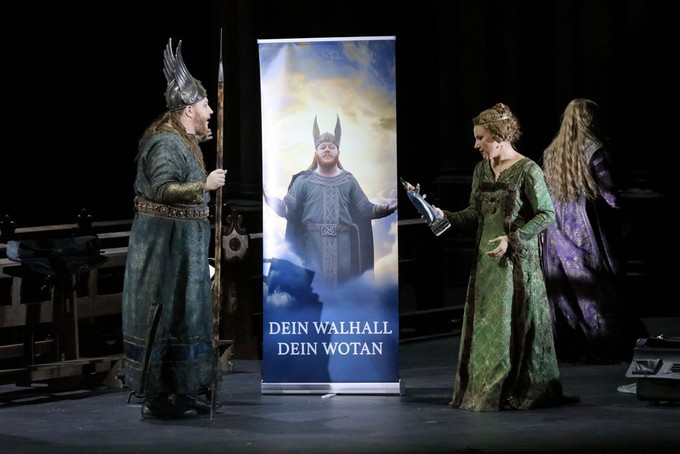 Мизансцены выстроены настолько внятно, что мы буквально читаем диалог между подрядчиками Фафнером и Фазольтом и богами будущей Валгаллы: «О, великие бездомные силы природы! А давайте мы вам построим храм (и там вас монетизируем). Туда будут приходить люди, уважать вас, молиться, покупать свечки, иконочки… За свои услуги мы берём недорого, а сегодня ещё и промо-акция! И будет у вас не политеизм-диверсификация, а концентрированная вертикаль монархической стабильности и порядка: один бог — один источник власти».