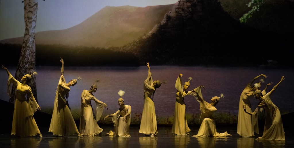 Практически у всех тюркских народов есть лирический танец, воссоздающий пластический образ птицы. Возможно, это связано с тюркскими эпосами о прекрасных пери (девушках-птицах), возможно — с традициями времён гуннов (протюрков) с их особым почитанием лебедя. Целая лебединая стая с их магическим очарованием была воссоздана в хореографической миниатюре Мукарам Авахри. И музыка, и пластика слились в порывистых движениях, в зависающих jete (иллюзия парения над сценой), кружении, мягких взмахах рук-крыльев, в грациозных наклонах и отточенных застывших позах. Ощущению неба, свободного парения способствуют клубы дыма в сценографии композиции, воссоздающие иллюзию облаков. Впечатление от танца такое, словно хореограф подбросила вверх лёгкую лебединую пушинку и она, медленно кружась, зачаровывает своим танцем. На танец «Лебедя» хочется смотреть не отрываясь. Кажется, чуть отвлечёшься и пропустишь самое главное — красоту полёта и устремление к мечте, иллюзию которых дарят эти прекрасные птицы.