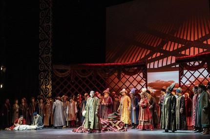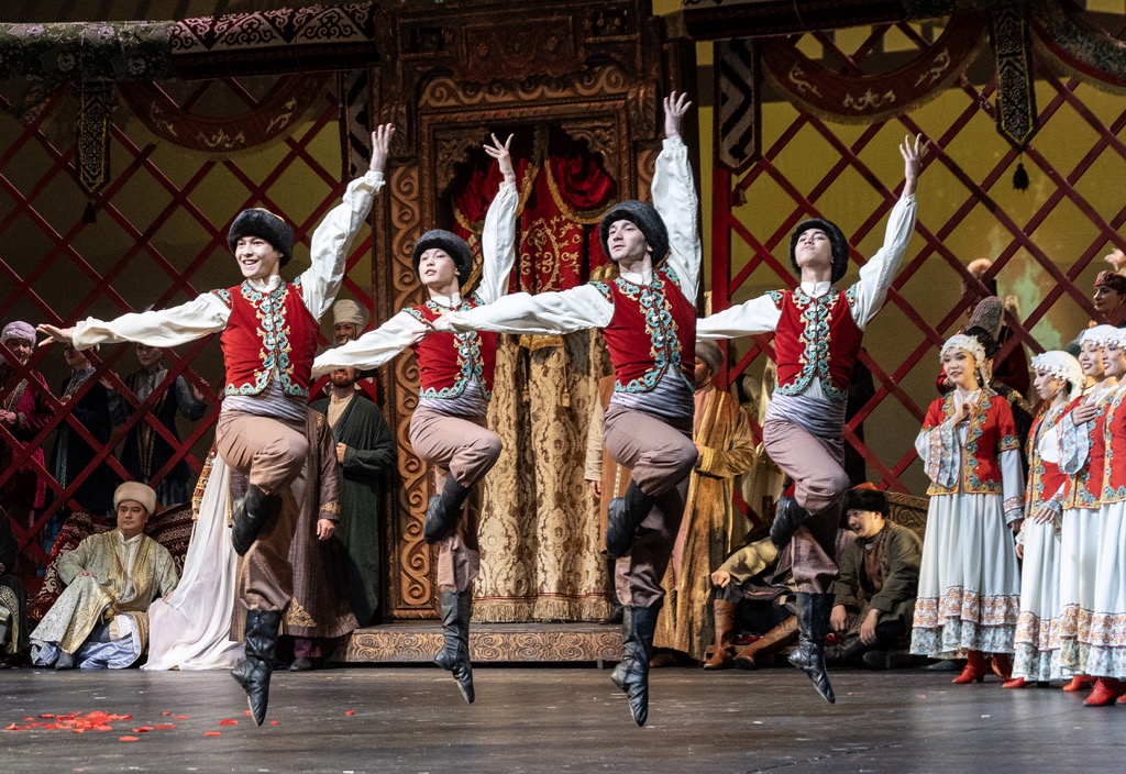 Вместе с тем европейский узко направленный постановочный взгляд на философско-драматическую коллизию оперы, завязка, развитие и кульминация которой зиждутся на исключительно азиатской психологической ментальности, смог также найти необходимую национально-идеологическую подпорку: ассистентом режиссера-постановщика выступил Еренбак Тойкенов, консультантом режиссера – Есмухан Обаев, а ассистентом художника по костюмам – Арасель Досмуратова. Балетмейстерами-постановщиками этого спектакля стали Турсынбек Нуркалиев и Галия Бурибаева, и в результате случилось самое настоящее евразийское оперное чудо, свидетелями которого, наконец, довелось стать и московским меломанам, получившим такой богатый и щедрый музыкально-постановочный подарок!