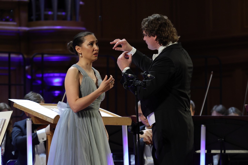 С сентября сего года Давид Саникидзе – солист Камерной сцены имени Покровского Большого театра России, и нет ни малейших сомнений, что творческие горизонты и победы певца еще впереди. А Максим Лисиин, артист Молодежной оперной программы Большого театра России (2022–2024), запомнившийся после победы в Ярославле на II Международном конкурсе вокалистов имени Собинова (2021 год, II премия), исполнив песнь Веденецкого гостя из «Садко» Римского-Корсакова и арию Роберта из «Иоланты» Чайковского, и на сей раз оказался на высоте музыкального стиля и артистического перевоплощения. Лирико-драматическая кантилена и чувственность певца в этих оперных «шлягерах» доставили большое, истинно меломанское удовольствие!