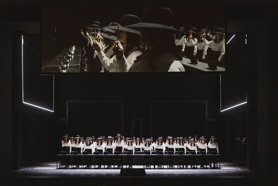 Мешанина из эпох в костюмах (дизайнер пересортицы — Yashi) и безграмотная организация сценического пространства (автор перегородок, закрывающих обзор важных мизансцен для большой части зрителей, — Фабьен Тенье) укрепляли безоговорочный провал спектакля.