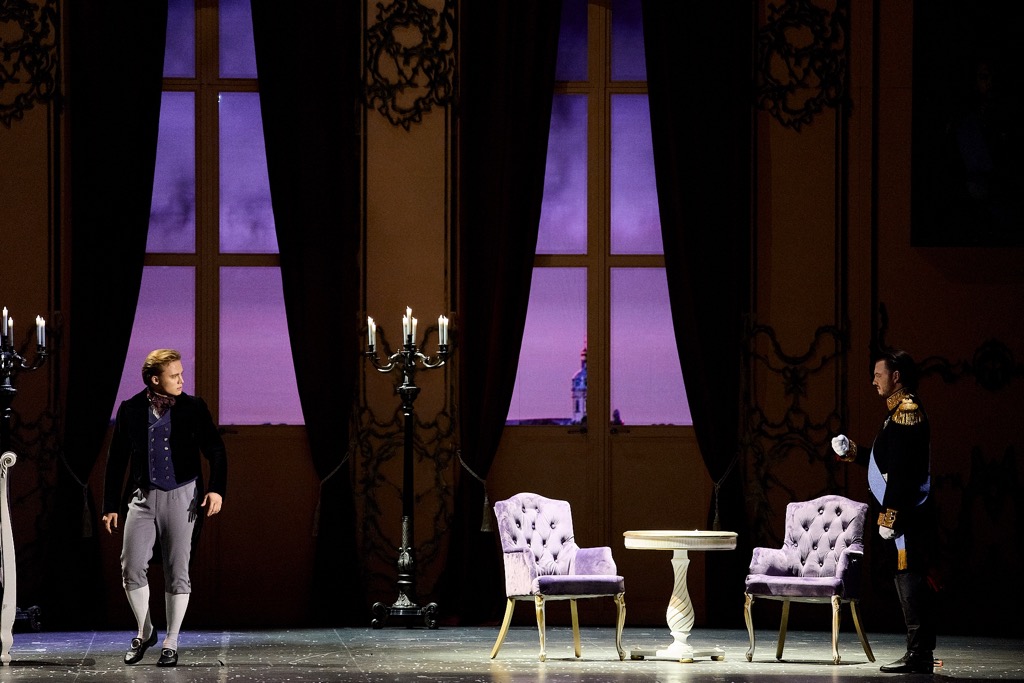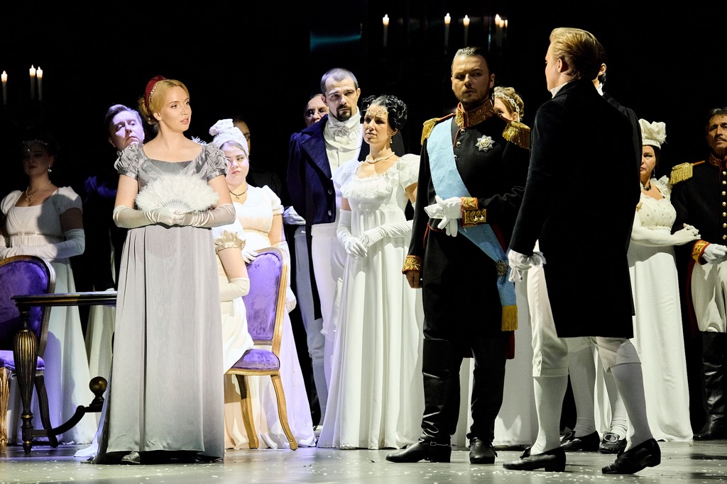 Изумительным Онегиным (даже и позабылось, что такие голоса бывают) оказался до мозга костей лирический баритон Семён Антаков, певец галантный, вальяжный, необычайно аттрактивный, живой! Его звучание предстало романтически одухотворенным, упоительно мягким, поистине благородным. А драматический (в аспекте вокала) вариант образа Онегина предложил Владислав Бирюков, и в нём он также показал себя сноровистым певцом-актером. Оба исполнителя в пределах своих вокальных амплуа предстали весьма органичными кавалерами – типажами из XIX века: на протяжении спектакля зрительское и слушательское доверие к ним не ослабевало ни на миг.