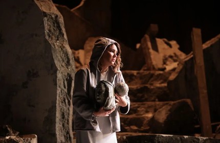 Блестяще в партии наглой Прециозиллы выступила российская меццо-сопрано Василиса Бержанская. Внешняя органичность певицы в роли аферистки-террористки, зарабатывающей на смертях, поддерживалась многоцветной вокальной палитрой и выразительным тембром. Перед нами возникало воплощение поговорки «кому война, а кому — мать родна», и обаяние этого символа ужасало: ведь противостоять этому циничному азарту в исполнении рыжей бестии, какой предстаёт в спектакле героиня В. Бержанской, невозможно. Это абсурдно озорное очарование смерти в образе Прециозиллы, — пожалуй, наиболее яркая находка спектакля.