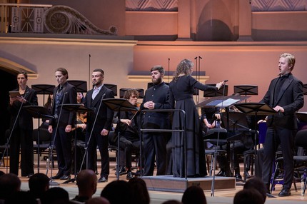 В теноровом лирическом цехе в партию Евангелиста весьма органично вписался Михаил Нор, а в довольно большой и певучей (не только речитативной) партии Петра неожиданным открытием стал Клим Тихонов: обладая несколько матовой вокальной фактурой, певец смог произвести впечатление, явив интеллектуальное благородство! В басовом (на сей раз – бас-баритоновом) цехе в партии Иисуса, особенно в арии-зачине его солилоквия «Отец мой!», изумительно целостное, психологически глубокое впечатление произвел Игорь Подоплелов, но, вместе с тем, с одной единственной арией Центуриона также запомнился Илья Татаков. Гендель – великий мастер музыкально-драматургических контрастов, и эти контрасты как в его «Страстях» в целом, так и в партиях певцов-солистов смогли впечатлить и на этот раз!