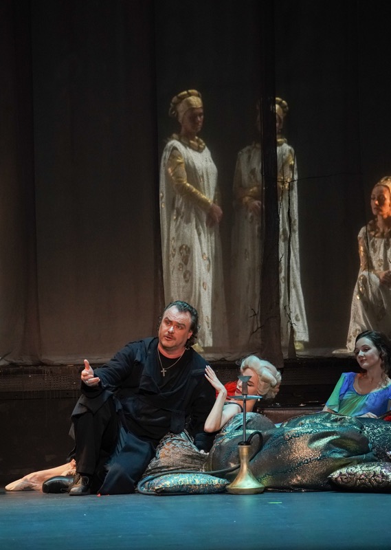 На этот раз речь идет о самых что ни на есть настоящих гастролях – не о совместном проекте с Большим театром. Так что в «Тангейзере» Вагнера Симфонический оркестр и хор Мариинского театра смогли проявить себя во всю силу своей прекрасной выучки и поистине изумительного, филигранного мастерства. В Мариинском театре эта постановка рождалась дважды: сначала 1 июня 2019 года состоялась премьера в Концертном зале театра, а через пару лет – 17 июня 2021 года – свет рампы она увидела уже на сцене «Мариинский-2». Но сказать, что это была одна и та же продукция, конечно же, нельзя, несмотря даже на то, что постановочная команда обеих театральных версий была одной и той же.