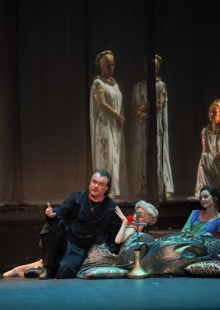 Драматических красок не было и в палитре звучания Сергея Скороходова, с которым в репертуаре Вагнера рецензенту впервые довелось встретиться на премьере «Лоэнгрина» в Большом театре (2022). И если титульную партию на чисто лирической спинтовости исполнителю тогда удалось весьма искусно и ловко вырезать, словно прецизионным алмазным резцом, хотя это и было явно на пределе его возможностей, то того же сáмого подхода к Тангейзеру оказалось уже недостаточно. Недостачу вокального драматизма певец восполнял прекрасным актерским воплощением, и в целом «по госпиталю» этот поэтический образ образов оказался скорее жив, нежели мертв…