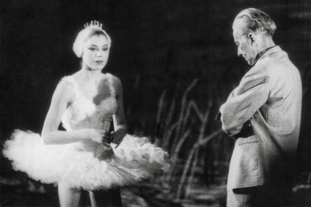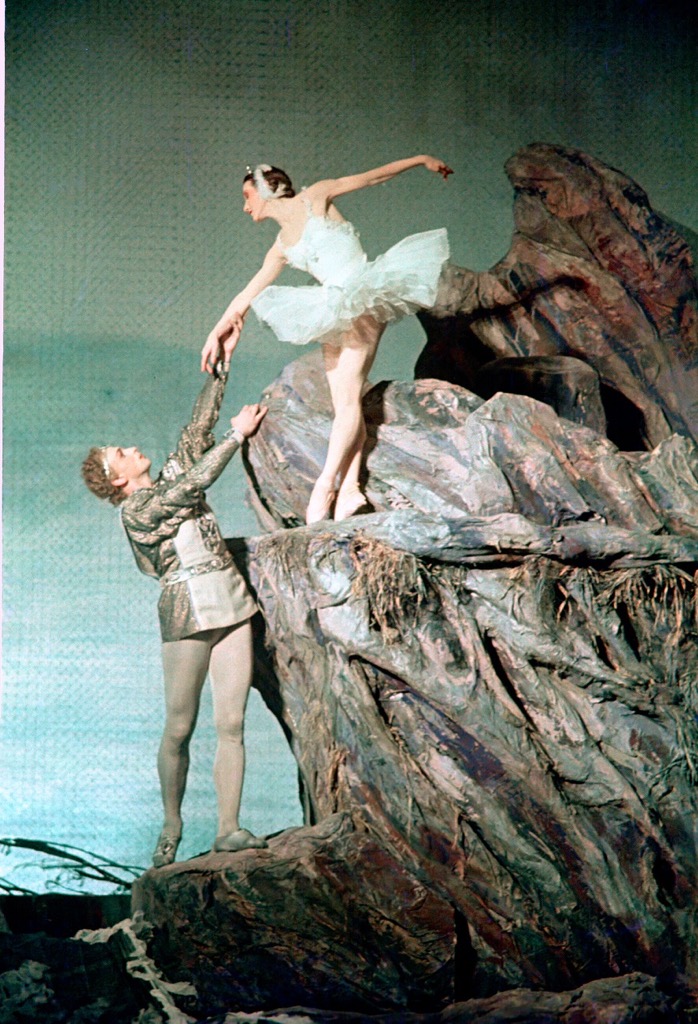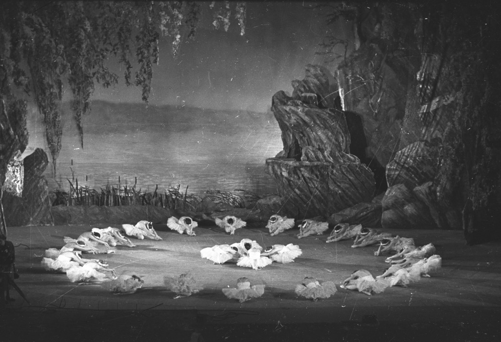 4) Сцена из 4 акта. Одетта – В. Т. Бовт, Принц – А. В. Чичинадзе. Фото из коллекции Муз. театра.