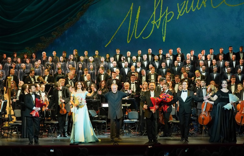 С оркестром Большого театра маэстро Гергиев выходил на публику уже не единожды, в том числе и с «Хованщиной» Мусоргского, и прозвучавшее оркестровое вступление к ней «Рассвет на Москве-реке» ожидаемо предстало образцом величественной музыкальной фрески – потрясающе красочной и психологически емкой по своей глубинной программной содержательности. Эта пьеса открыла вечер, а финалом первого отделения стал большой фрагмент из «Мазепы» Чайковского – соединение сцены Марии и Любови (в кабинете Мазепы) с финалом второго акта (с ансамблево-хоровой сценой казни). И ансамбль солистов в нём ничуть не подвел: Анна Шаповалова (Мария), Ксения Дудникова (Любовь), Денис Макаров (Кочубей), Илья Селиванов (Искра), Иван Давыдов (Пьяный казак).