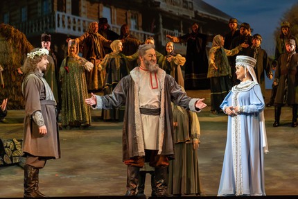 Еще один момент, на который следует обратить внимание, заключен в том, что в либретто обсуждаемой казанской постановки вошли как оригинальные тексты Егора Розена, так и тексты Сергея Городецкого, ставшие памятником этой опере Глинки в советскую эпоху. Винегрет из обоих текстов плюс народное творчество иных исполнителей давно уже примирили с проблемой, которая при детальном рассмотрении ею вовсе и не является.