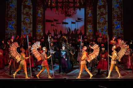 К обсуждению постановочных аспектов фундаментальной классической продукции отсылаем к обзору премьеры, а на сей раз просто отметим, что после десяти лет своей сценической жизни казанский «Трубадур» находится в прекрасной прокатной форме и что к поддержанию его в должном хоровом тонусе теперь присоединился новый главный хормейстер театра Юрий Карпов.