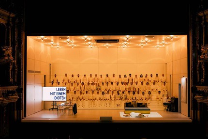 Прежде всего, режиссёр вытесняет из сценического повествования всё «советское» (за исключением таких не купируемых музыкальных вкраплений, как «Смело, товарищи, в ногу!»). В оформлении и выстраивании мизансцен К. Серебренников показывает, что «Жизнь с идиотом» — часть европейского художественного мейнстрима.