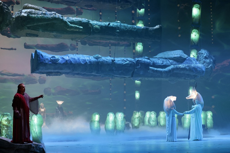 На контрасте с этим нельзя не вспомнить интереснейшую постановку «Кольца», с которой Софийский театр оперы и балета (режиссер – Пламен Карталов) гастролировал на Исторической сцене Большого театра в 2018 году. Обе эти продукции решены в стиле «фэнтэзи», однако если в болгарском «Кольце» философская символика была возведена в ранг абсолюта за счет довольно аскетичных, но визуально емких средств театральной абстракции, то мариинское «Кольцо» – это мифологически сказочная феерия едва ли не в эстетике романтического театра XIX века, но изумительно решенная средствами современного театра с применением новейших компьютерных технологий. В этом и заключена сила этой постановки, и именно в этом проявился эффект ее обновления.