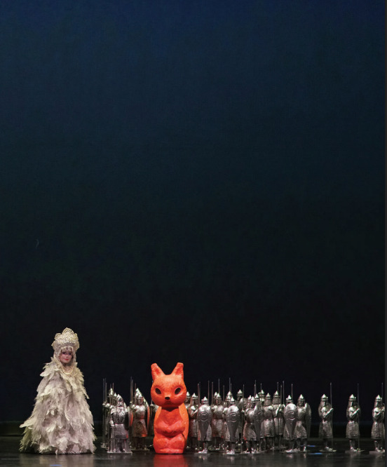 К слову, о мультиках: анимационные проекции в спектакле Дм. Чернякова занимают важное место, и здесь сложно переоценить роль екатеринбургского художника-аниматора и режиссёра Зои Киреевой, создавшей целый художественный мир, переворачивающий наше представление о мрачной природе этой обманчиво мажорной партитуры Римского-Корсакова с её бравурными фанфарными рефренами.