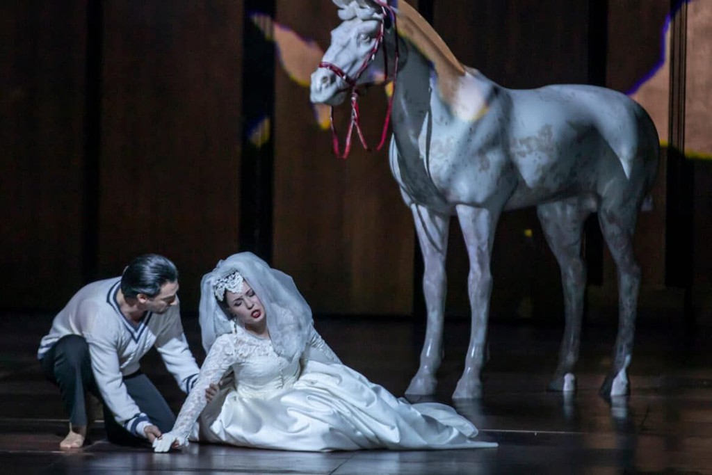 Декорации Малгожаты Щесняк удачно дополнялись видеоинсталляциями Дениса Гегана с крупными планами солистов и проекцией известной картины Гойи «Сатурн, пожирающий своих детей». Всё создавало пространство тревоги распада в противостоянии личного и государственного, сакрального и интимного. Динамичные мизансцены, проекции и холодный свет Феличе Росса усиливали ощущение неизбежной катастрофы.