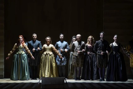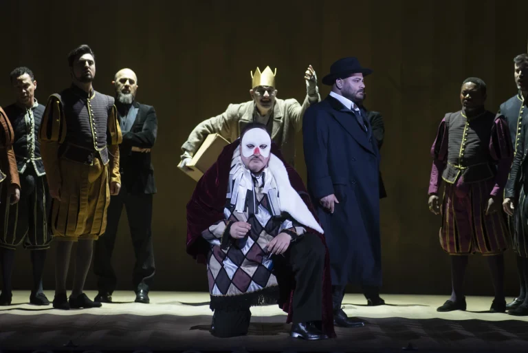 В костюмах также царит пересортица от ренессансных дублетов до джинсов и смокингов и нарядов из кабаре 1930-х годов. Танцовщицы из шоу-ревю во время «La donna è mobile» с перьями и эстетикой ретро-шапито выглядят, прямо скажем, глуповато: будто оказываешься в курятнике на карнавале.