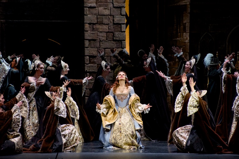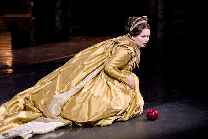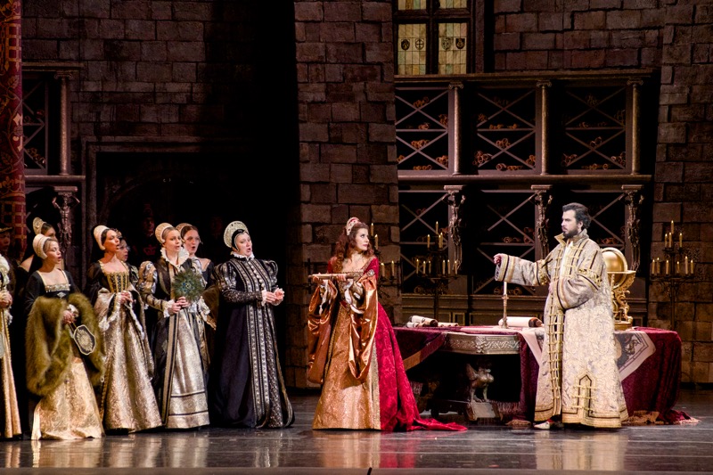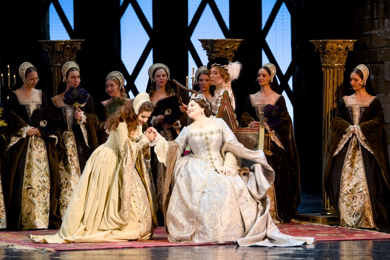 Но в театральной жизни столицы то густо, то пусто, и в те же самые дни с 25 по 29 июня пришлось разрываться между этой премьерой и гастрольными показами в Большом театре оперы Верди «Аида, заявленными как постановка Мариинского театра с участием солистов оперы обоих театров, оркестра и хора Большого театра, и поэтому речь пойдет о последних (третьем и четвертом) спектаклях «Анны Болейн» 27 и 29 июня. Постановка как предмет визуально-зрелищной театральности, как вдохновенная историческая проработка сюжета о трагической судьбе Анны Болейн, второй жены английского короля Генриха VIII, идя от музыки и либретто «по классике жанра», сделала всё для торжества романтического бельканто, но сам музыкальный пласт вровень с изумительной театральной оболочкой спектакля на сей раз так и не встал…