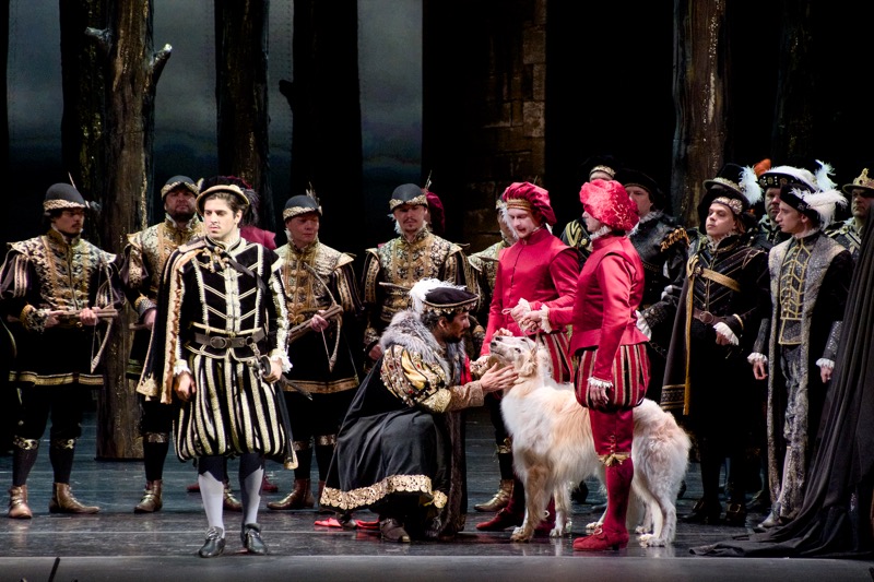 При этом вновь заставило задуматься то, что «Анна Болейн» – опус весьма масштабный, но сегодня он традиционно позиционируется оперой в двух актах примерно по полтора часа каждый, да и современные театральные постановки, аудио-, видеорелизы и справочники следуют именно такому формату номерной структуры. Но в этой постановке в Москве – три акта, так как второй акт в ней – после терцета Генриха, Анны и Перси – из-за технического антракта, потребовавшегося постановщикам, поделен на два акта, и в результате расчетная длительность спектакля с двумя антрактами – 3 часа 50 минут. Так два акта или три? При всей праздности вопроса это занимало рецензента еще полтора десятка лет назад, когда с «Анной Болейн» впервые довелось встретиться в театре, и интересующихся отсылаем к соответствующему обзору.