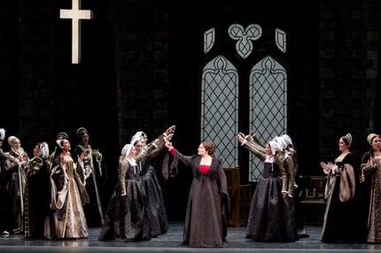 У Доницетти есть еще одна опера, где главная героиня – Елизавета I. Это бескровная на сей раз melodramma serio «Замок Кенильворт» (1829), которую, говоря уже о тетралогии из жизни Тюдоров, пожалуй, логичнее всего было бы расположить между «Анной Болейн» и «Марией Стюарт». Но вероятность увидеть в России и эту оперу, и всю трилогию в едином постановочном цикле ничтожно мала, и нынешняя постановка «Анны Болейн» в Москве – это уже невероятно значимый репертуарный прорыв. А в завершении разговора о новой постановке как о театральной продукции сделаем акцент на том, что в наше время, когда наследие Доницетти – и не только его – подвержено научно-критическим редакциям, очищающим партитуры от поздних прокатных наслоений, театр обратился к современному академическому изданию «Анны Болейн», и это не может не радовать.
