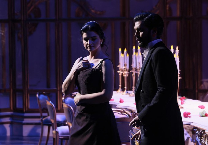 Франческа Замбелла — дама с юмором: мало того, что она вывела на сцену Большого театра вороного коня в пику белой лошади в давнишнем спектакле «Лючия ди Ламмермур» на сцене Музыкального театра имени Станиславского и Немировича-Данченко, так ещё и поместила в душераздирающую вторую картину клетку с белыми голубями. Эта феерическая аллюзия на киноверсию «Травиаты» Франко Дзеффирелли рифмуется также с культовым фильмом Владимира Меньшова «Любовь и голуби» (1984) и создает тонкий пародийный подтекст.
