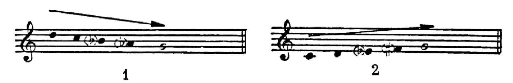 В более сложных видах афганского песенного творчества ладовый диапазон шире и охватывает нижние — 5-ю и 4-ю ступени лада (см. нотный пример 2).