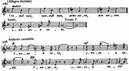 В самом рассказе мерное ритмическое движение, характерное для повествовательного балладного жанра, сочетается с подчеркнутой скорбно-лирической выразительностью интонаций. При этом особый щемяще-тоскливый колорит придает музыке многократно повторяемый гармонический оборот в заключении фраз: