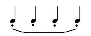 В нотной записи А. обозначается словами (кроме указанных выше) tenuto, portato, marcato, spiccato, pizzicato и др. или графич. знаками — лигами, горизонтальными чёрточками, точками, вертикальными чёрточками (в изданиях 18 в.), клинышками (обозначавшими острое staccato с нач. 19 в.) и разл. комбинациями этих знаков (напр.),