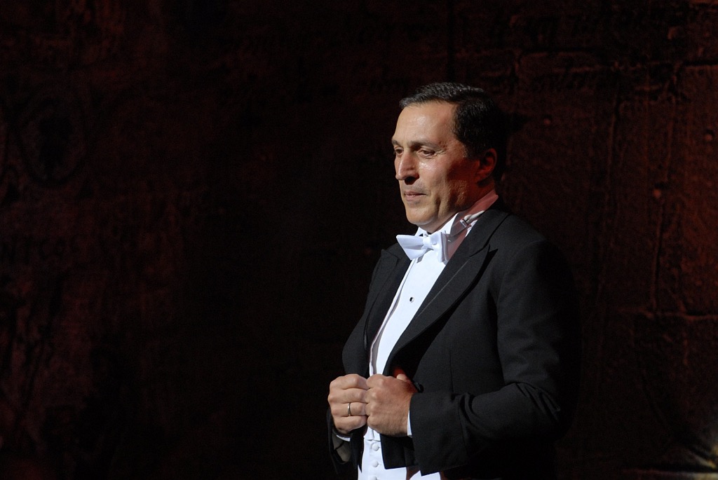 Третья мировая оперная звезда, заявленная в памятный вечер, - легендарный итальянский баритон Ренато Брузон по состоянию здоровья на сцену не вышел, и его заменил ведущий баритон Большого Владимир Редькин, более чем достойно представивший марку родного театра. Его герой (Набукко) предстал практически равновеликим по вокальному благородству и эмоциональной наполненности своей знаменитой партнерше, и дуэт царя с его честолюбивой дочерью стал, пожалуй, лучшим номером концертной программы. Вообще следует отметить, что Большой театр в этот вечер не ударил в грязь лицом: оркестр, ведомый Александром Ведерниковым, был более, чем просто корректным аккомпаниатором, хор снискал заслуженные овации не только после знаменитого Va pensiero, а среди исполнителей небольших партий в выбранных вердиевских фрагментах следует отметить Лолитту Семенину, Сергея Мурзаева, Маргариту Мамсирову, Андрея Дунаева.