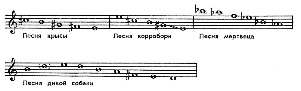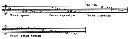 Австралийская музыка складывалась во взаимодействии двух совершенно различных муз. культур — коренных жителей континента и колонистов (гл. обр. англичан), заселявших Австралию с конца 18 в.и принёсших с собой европ. муз. культуру — нар. и профессиональную. На этой основе происходило формирование совр. А. м., к-рая в ходе своего развития приобрела типич. местные особенности. Муз. культура аборигенов Австралии, сохранившая множество архаич. черт, восходивших к древнейшему прошлому страны, синкретична и органически связана с их обществ. жизнью и бытовым укладом. Наиболее распространено песенное творчество. Песни обычно сопровождаются танцами, бытовыми и культовыми плясками — корробори, исполняющимися на празднествах, при разл. церемониях. Напевы австрал. песен короткие — секундового, терцового, реже квартового объёма, с характерным повтором звуков одной и той же высоты либо строящиеся в виде нисходящего, поступенного, как бы «сползающего» звукоряда. Объём звукоряда иногда расширяется до октавы и более (гл. обр. в напевах Центр. Австралии). Для песенных напевов типичны традиционные ритмич. формулы, выработанные в процессе отбивания ритма при исполнении песен, сопровождающих пляски. Ритмика нек-рых напевов, связанных с охотничьими обрядовыми плясками, — своего рода подражание прыжкам кенгуру, а также движениям других животных.