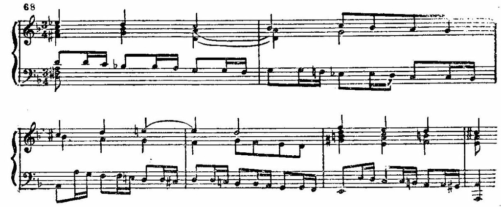 Здесь, как и в некоторых органных циклах (прелюдия и фуга ля минор, фантазия и фуга соль минор), интенсивность развития, осуществляемого в виде разрастающихся волн с постепенным превышением кульминаций, позволяет говорить о предвосхищении Бахом принципов симфонической драматургии.
